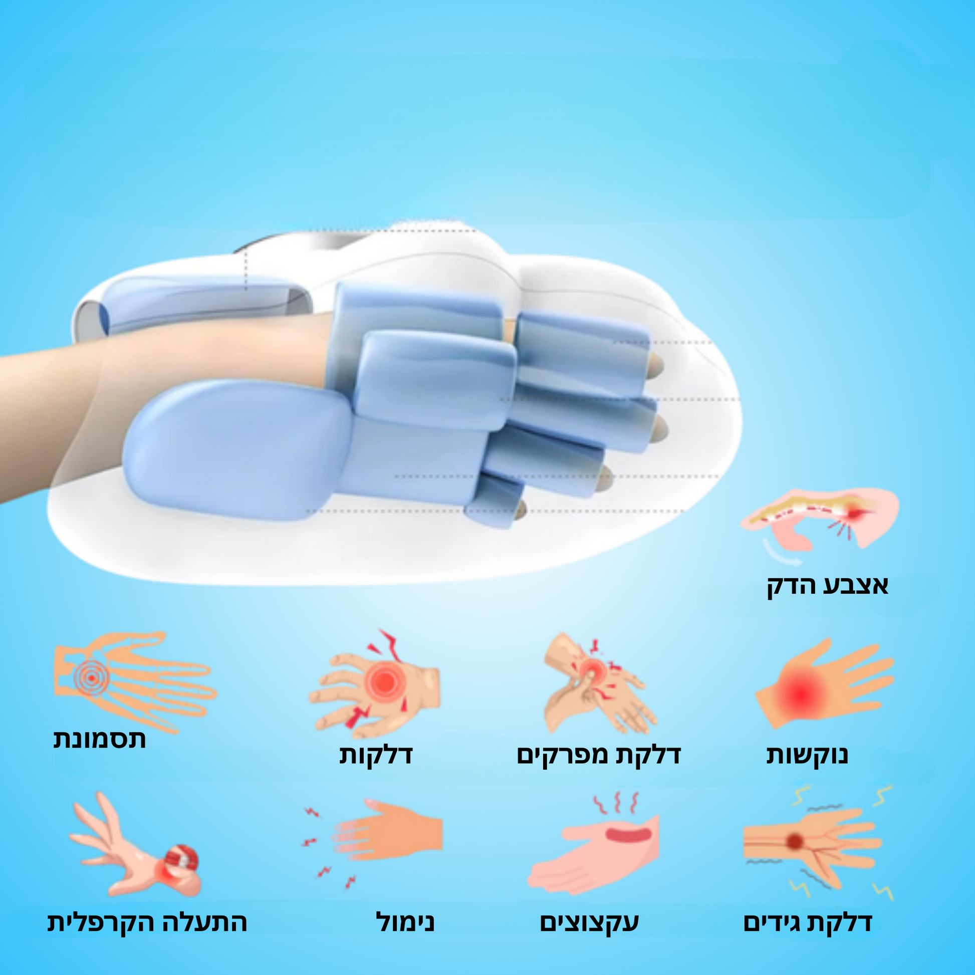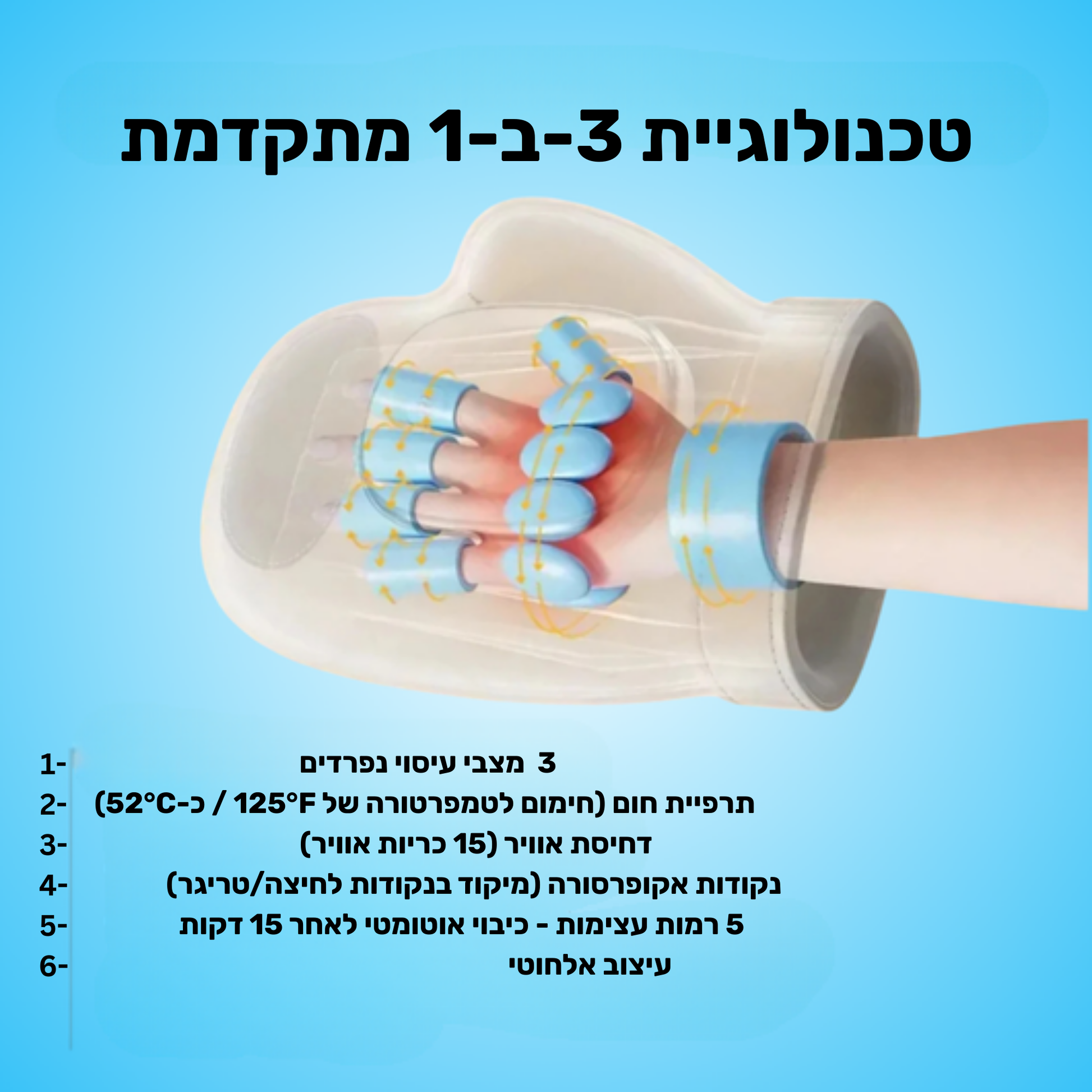 | דחיסת אוויר היקפית (360°) לכל אצבע בנפרד | ||