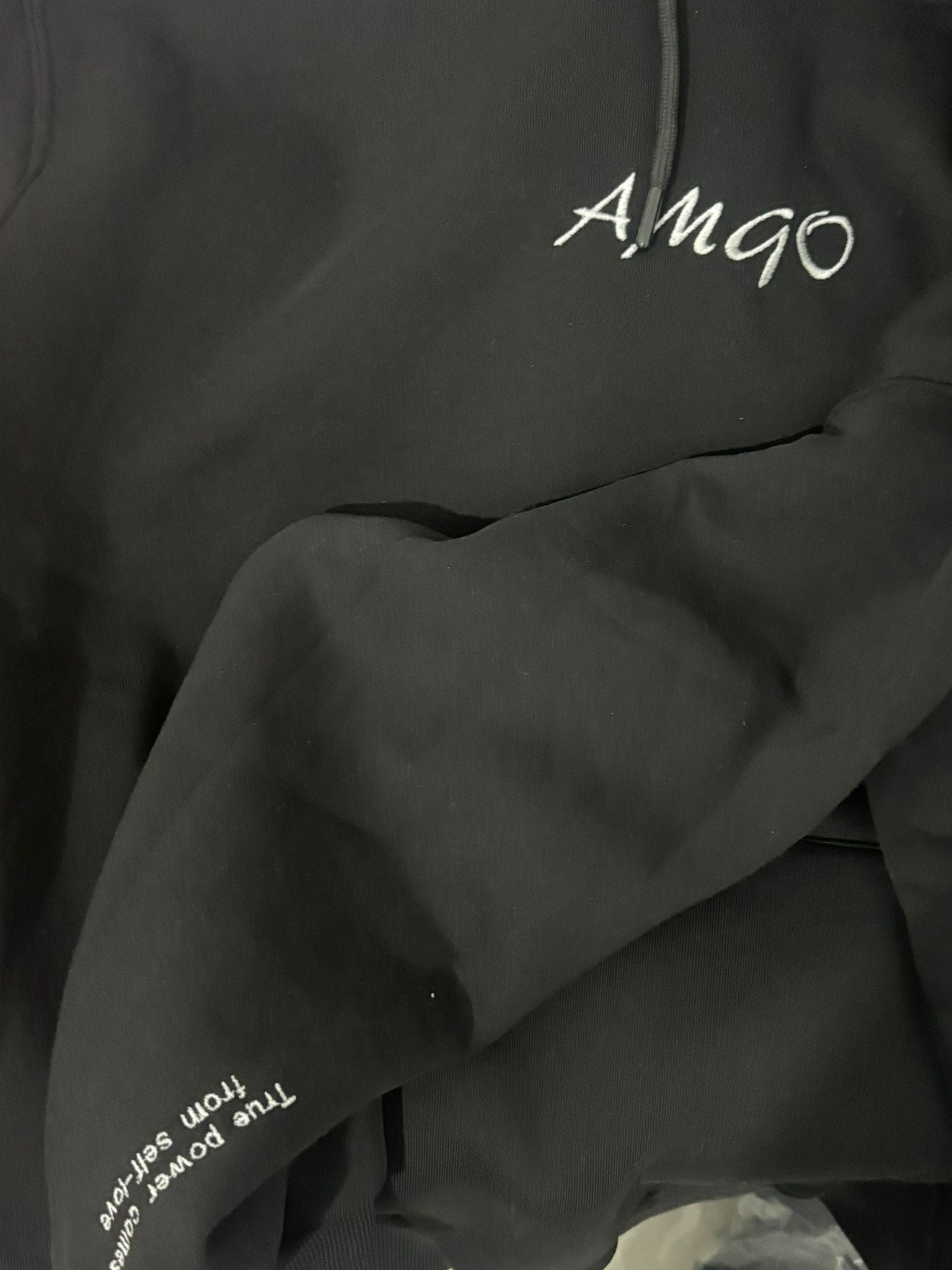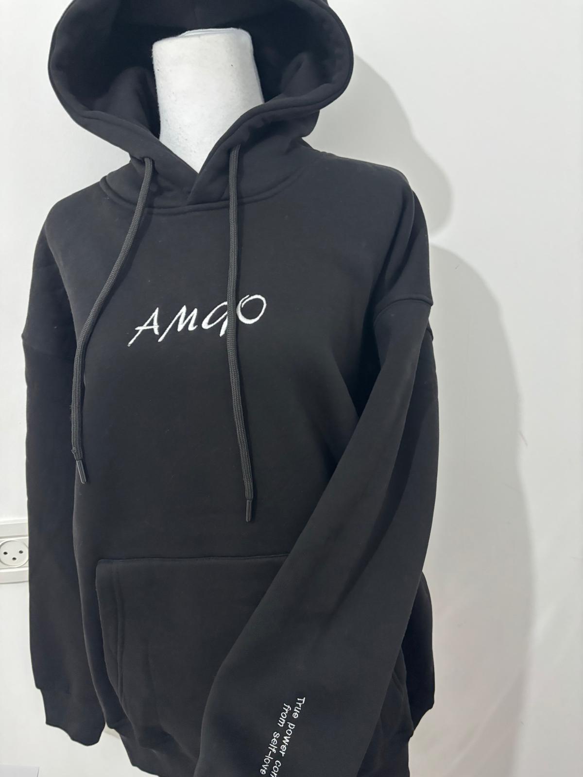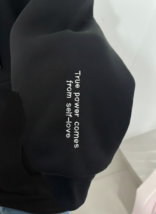 קפוצ'ון שחור-עם כיתוב על השרוול