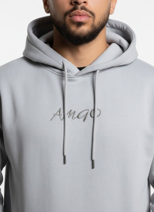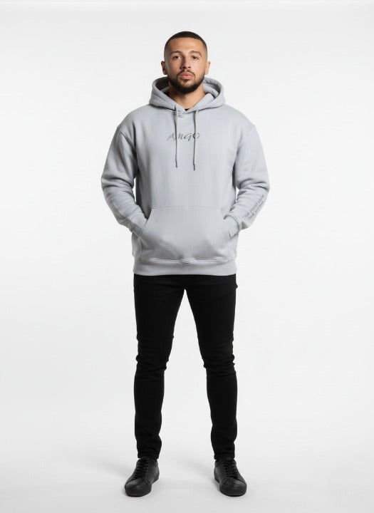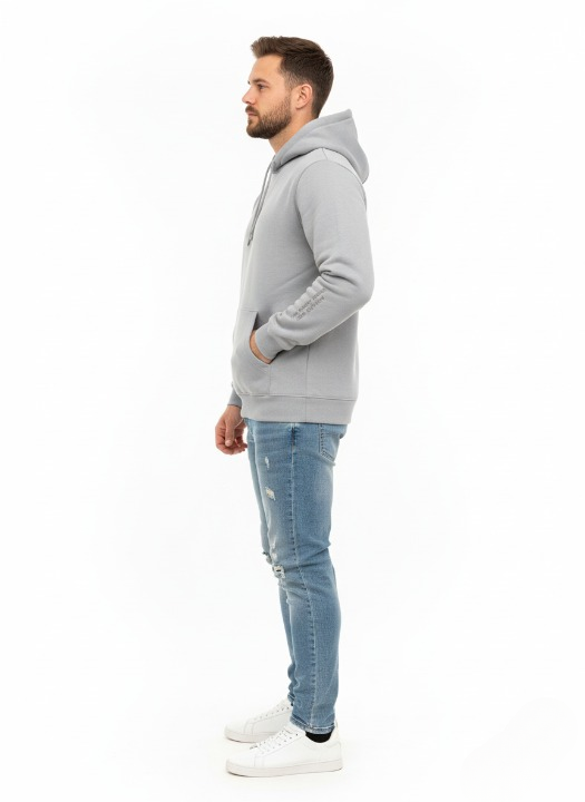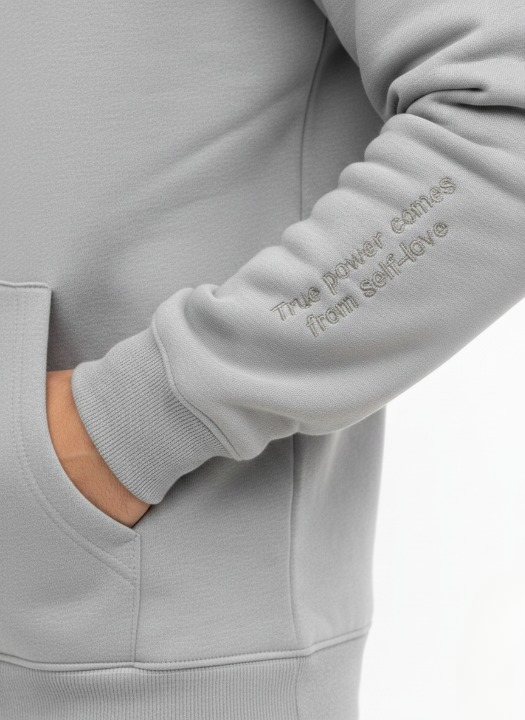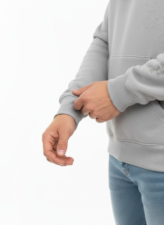 קפוצ'ון אפור-עם כיתוב על השרוול