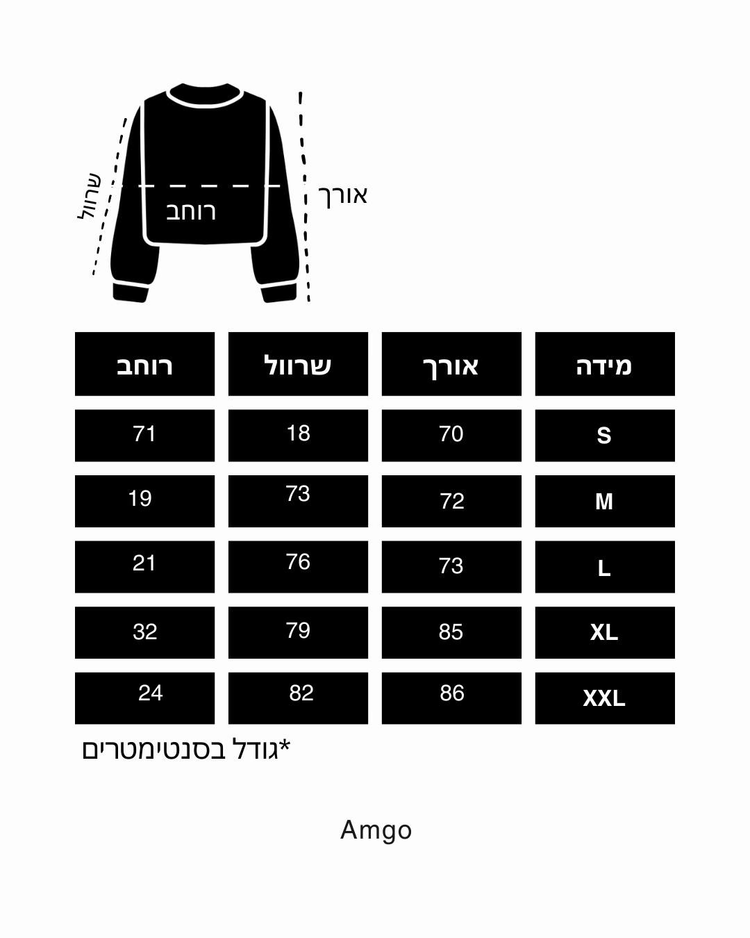 החליפות שלנו מגיעות בגזרה רגילה, ולכן מומלץ לבחור את המידה שאתה לובש בדרך-כלל. אין צורך לעלות או לרדת במידה—פשוט לבחור את המידה הקבועה שלך לנוחות והתאמה מושלמת.